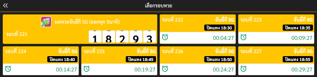 ห้อง จับยี่กี 5G 288 รอบ ห่างกันรอบละ 5 นาที รอบแรก 0:05น รอบสุดท้าย 0:00น ของอีกวัน